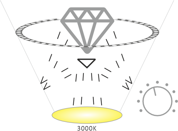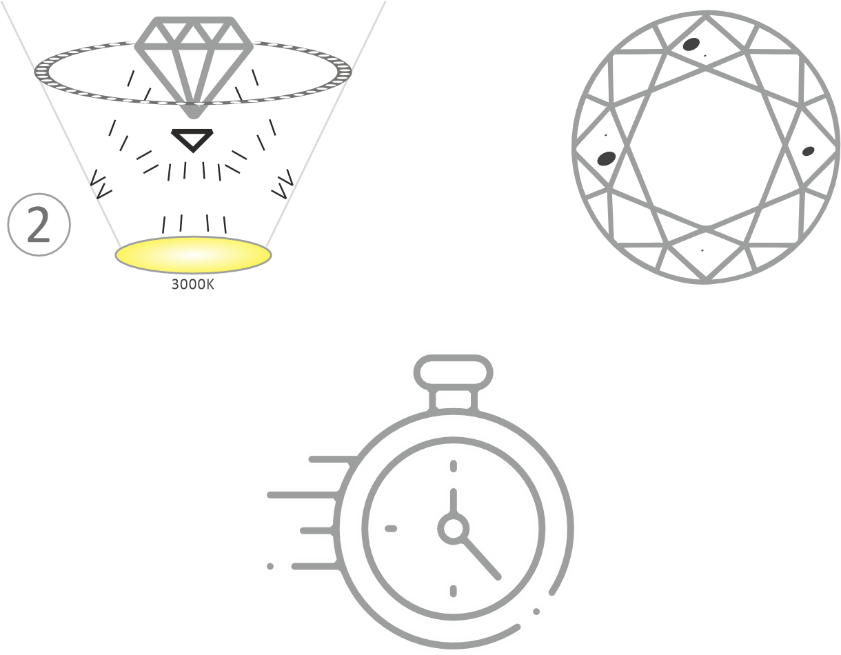 With the introduction of ring light illumination and darkfield illumination, it has become easy to inspect the diamond. The targeted lighting combining the yellow lights with LED ring light helps easy inclusion; therefore the lights convene into the center of the diamond from the sidewalls, which makes an easy cross-verification process.