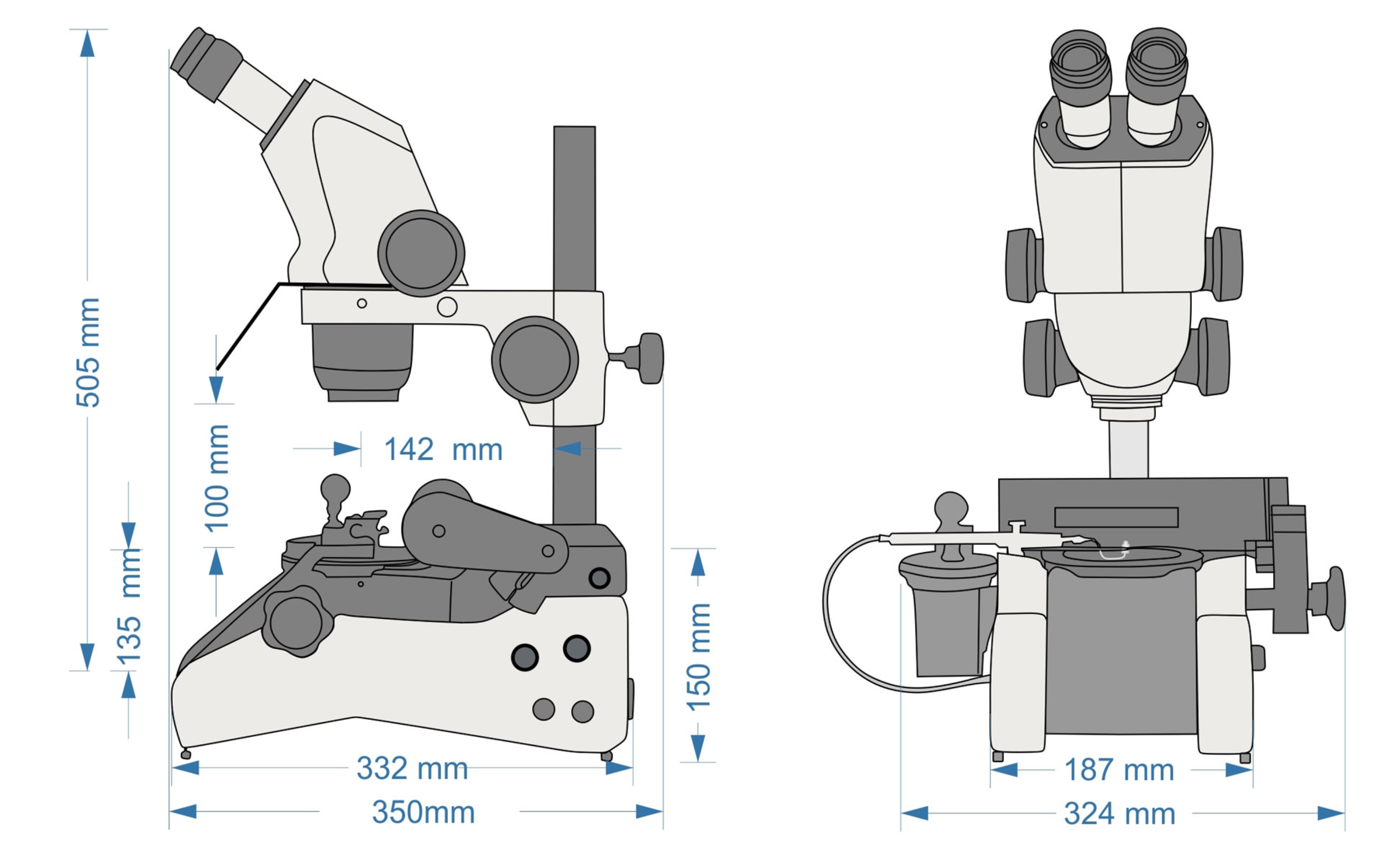 | Magnification Range | 8x to 40x with basic version(10x eyepieces,no front optics)all magnifications from 4x to 200x (interchangeable optics) | 6.3x to 50x with basic version(10x eyepieces,no front optics)all magnifications from 2x to 250x (interchangeable optics) | |||||||||||||||