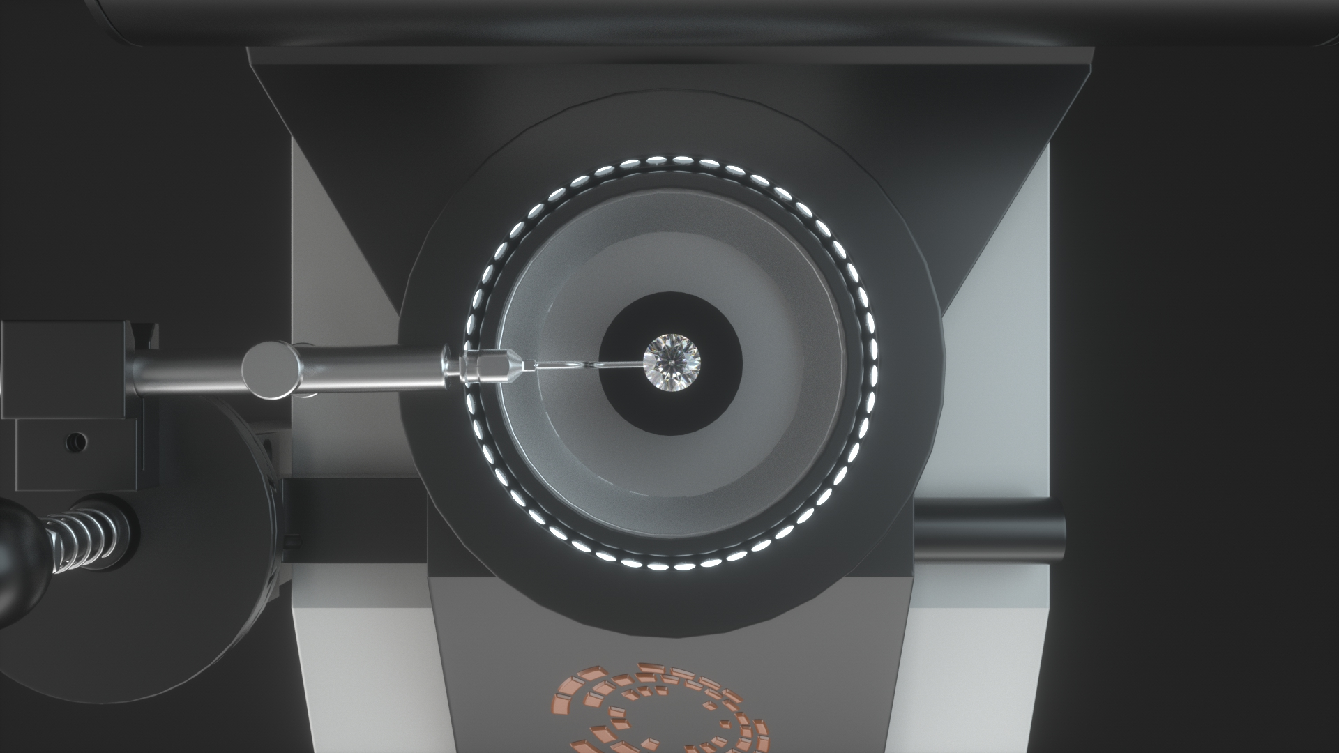 The introduction of a repercussive mechanism in the instrument is used for inclusion and easy visibility of a diamond's clarity and finish. 3000K halogen bulbs are used to analyze hidden inclusion and check the clarity of the diamond.