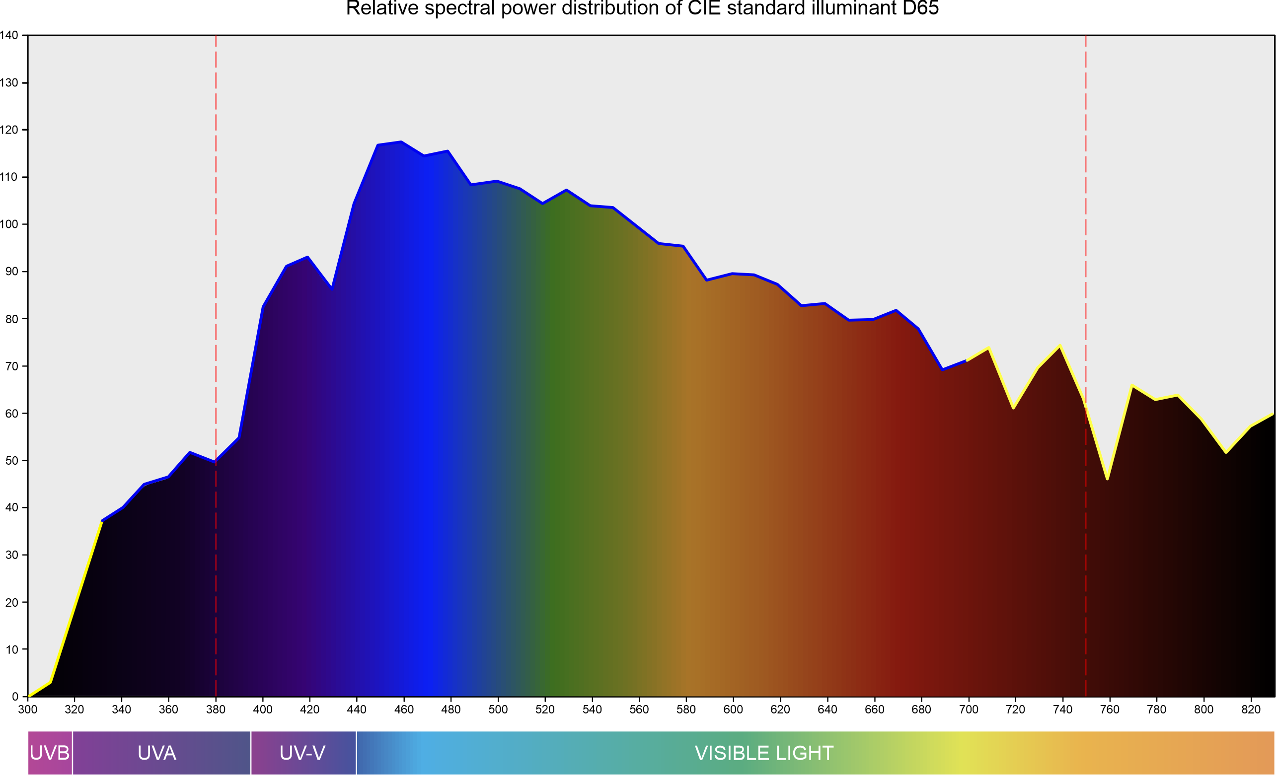 CIE - D65 380 nm to 780 nm + 365nm