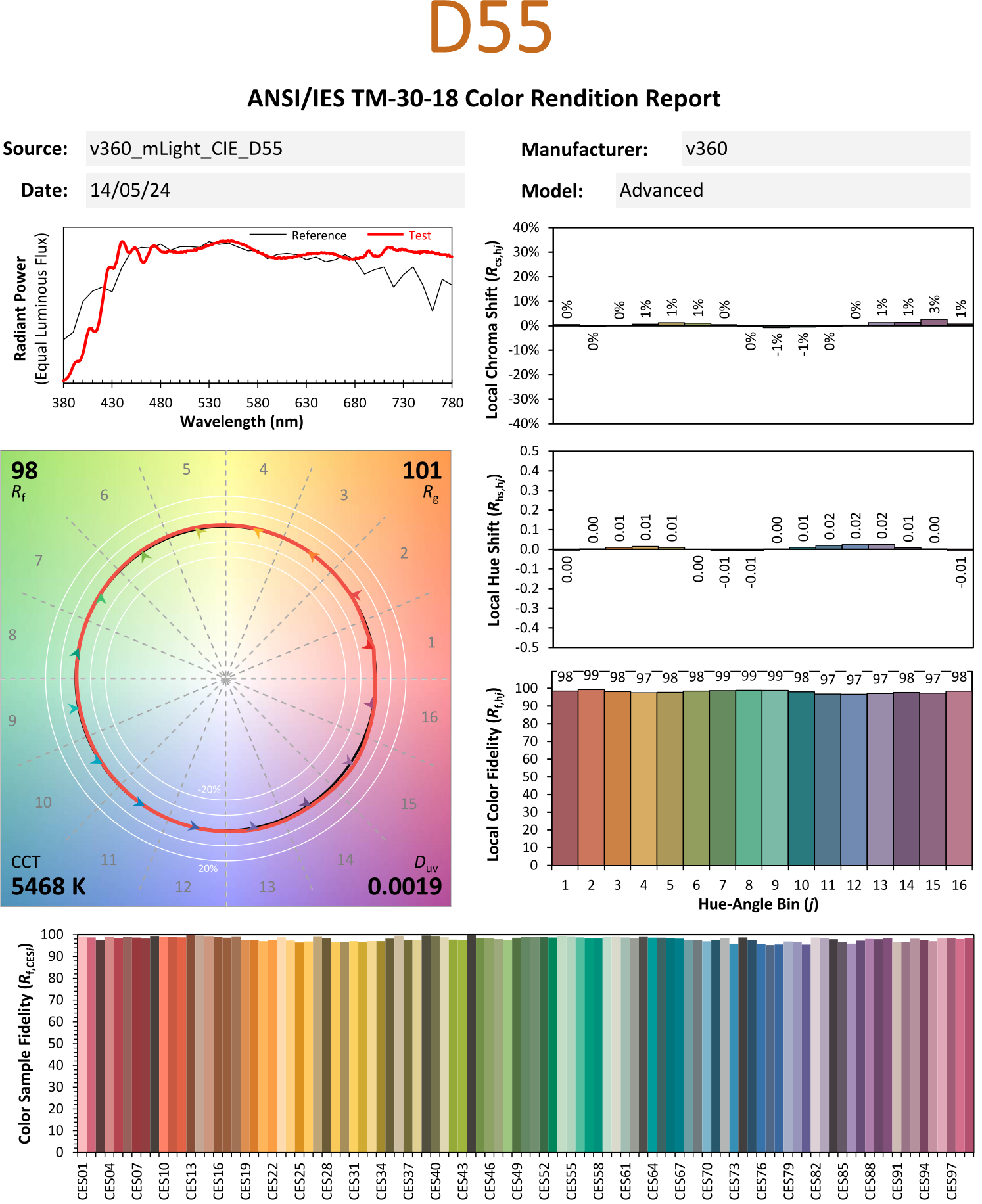 CIE - D55 380 nm to 780 nm + 365nm