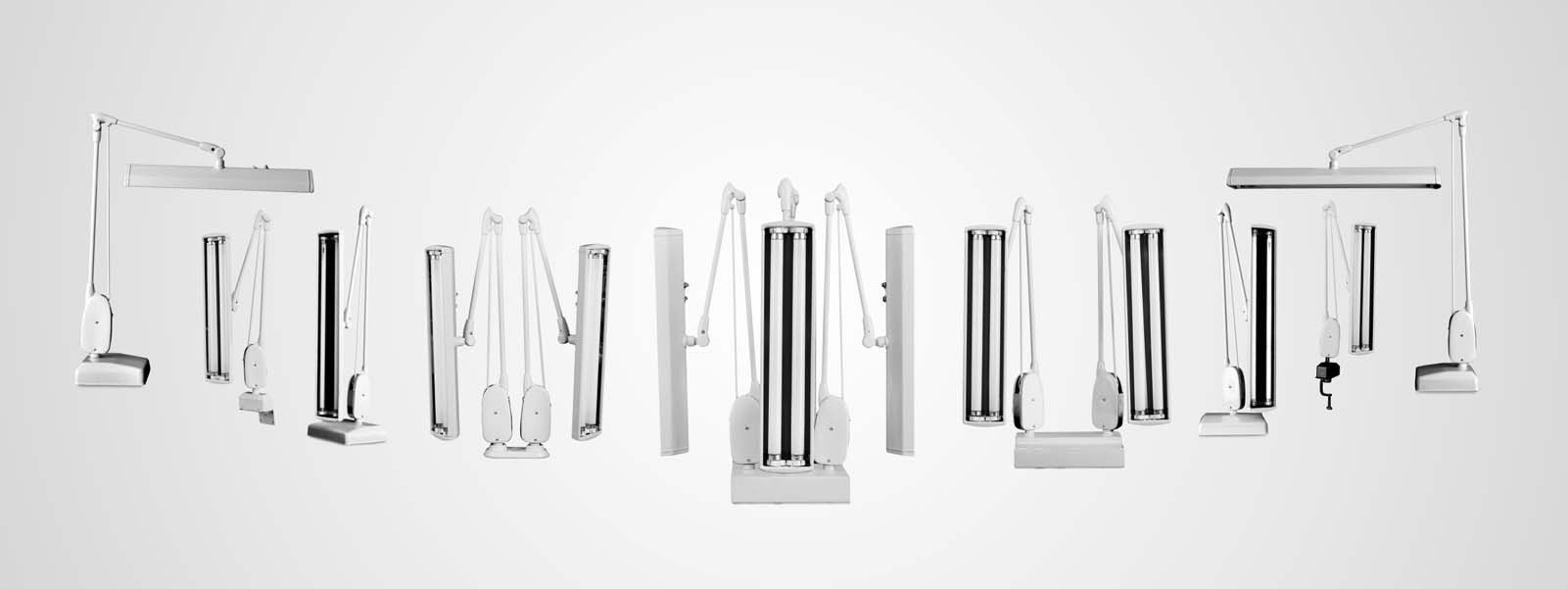 We offer the large selection of adjustable arm lighting and various type of bodies for lighting. Our illumination technologies include fluorescent and LED lights. We have many configurations to select from to suit your individualised space and application needs.