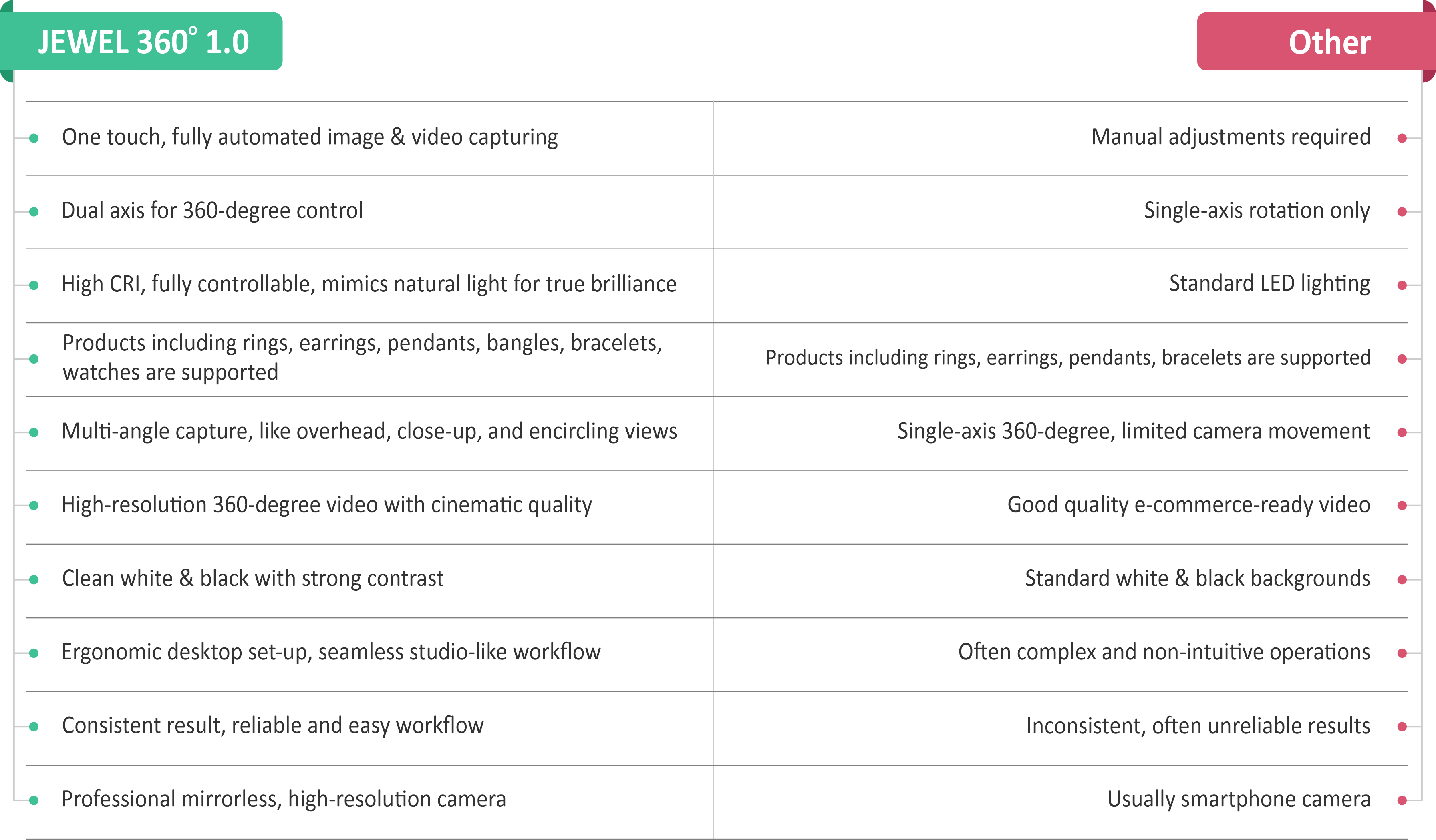 One can capture multiple angles of the jewellery with the dual rotation facility. This feature enables you to get every shot with precision and speed.
